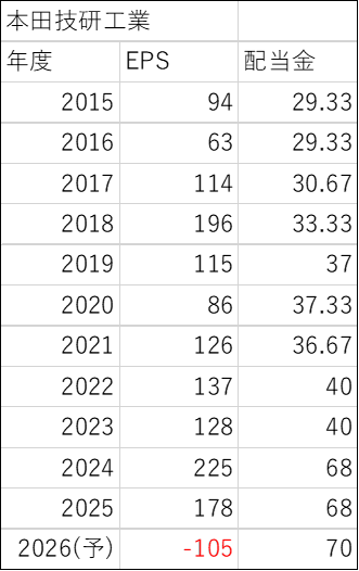 2026年3月期は赤字見込みですが、ホンダは配当金額の修正を行っておりません。